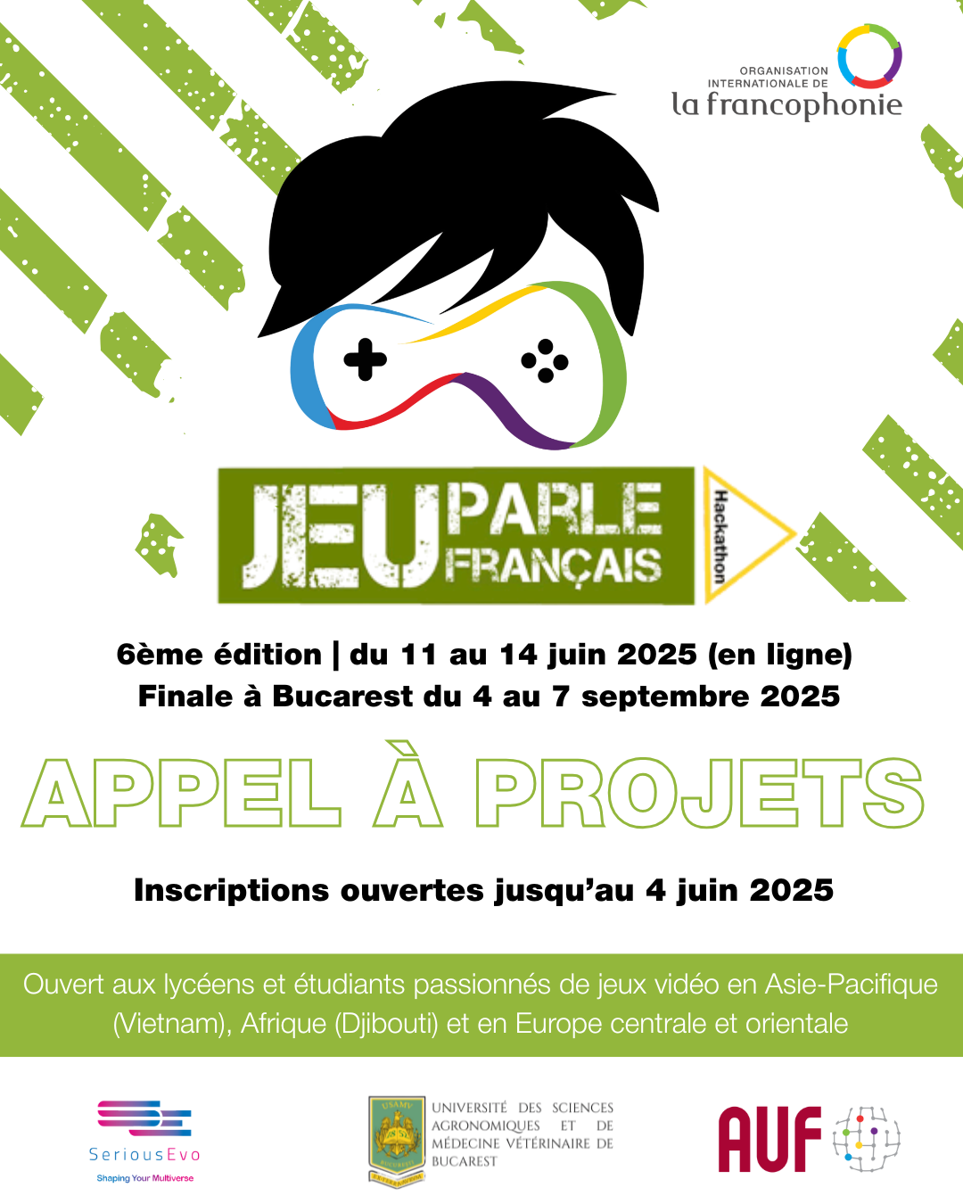 Appel à projets : Hackathon “Jeu parle français” (6e édition) By Aminata Ibrahima NdiayeActualités, Appels à candidatures, CREFA, CREFA, CREFAP, CREFECO, CREFECO, Extra-scolaireNo Comments 24 avril 2025 Love0