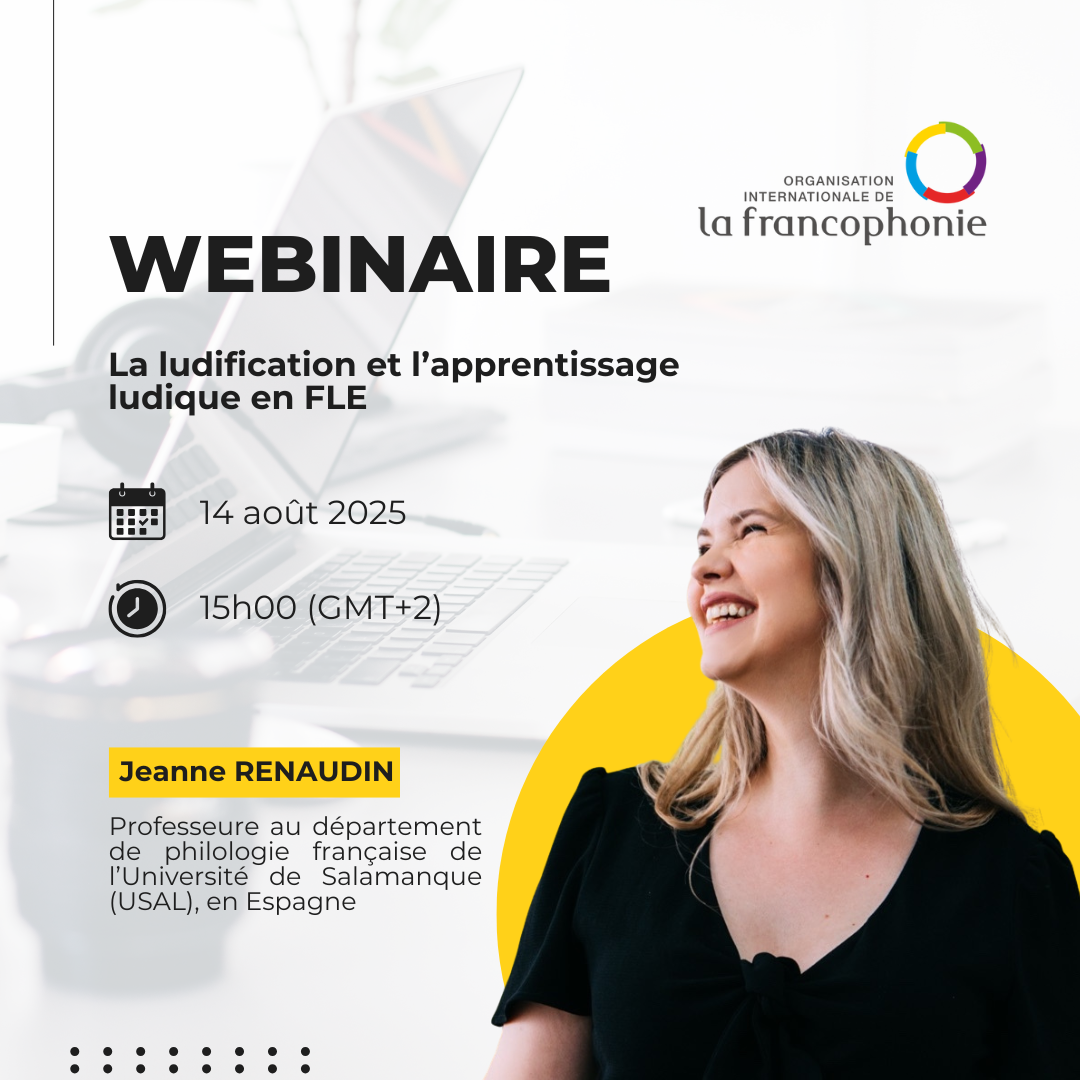 Webinaire #8 des profs de FLE de l’OIF : La ludification et l’apprentissage ludique en FLE By Aminata Ibrahima NdiayeActualités, Actualités, CREFA, CREFAP, CREFECO, WebinairesNo Comments 10 août 2025 Love0