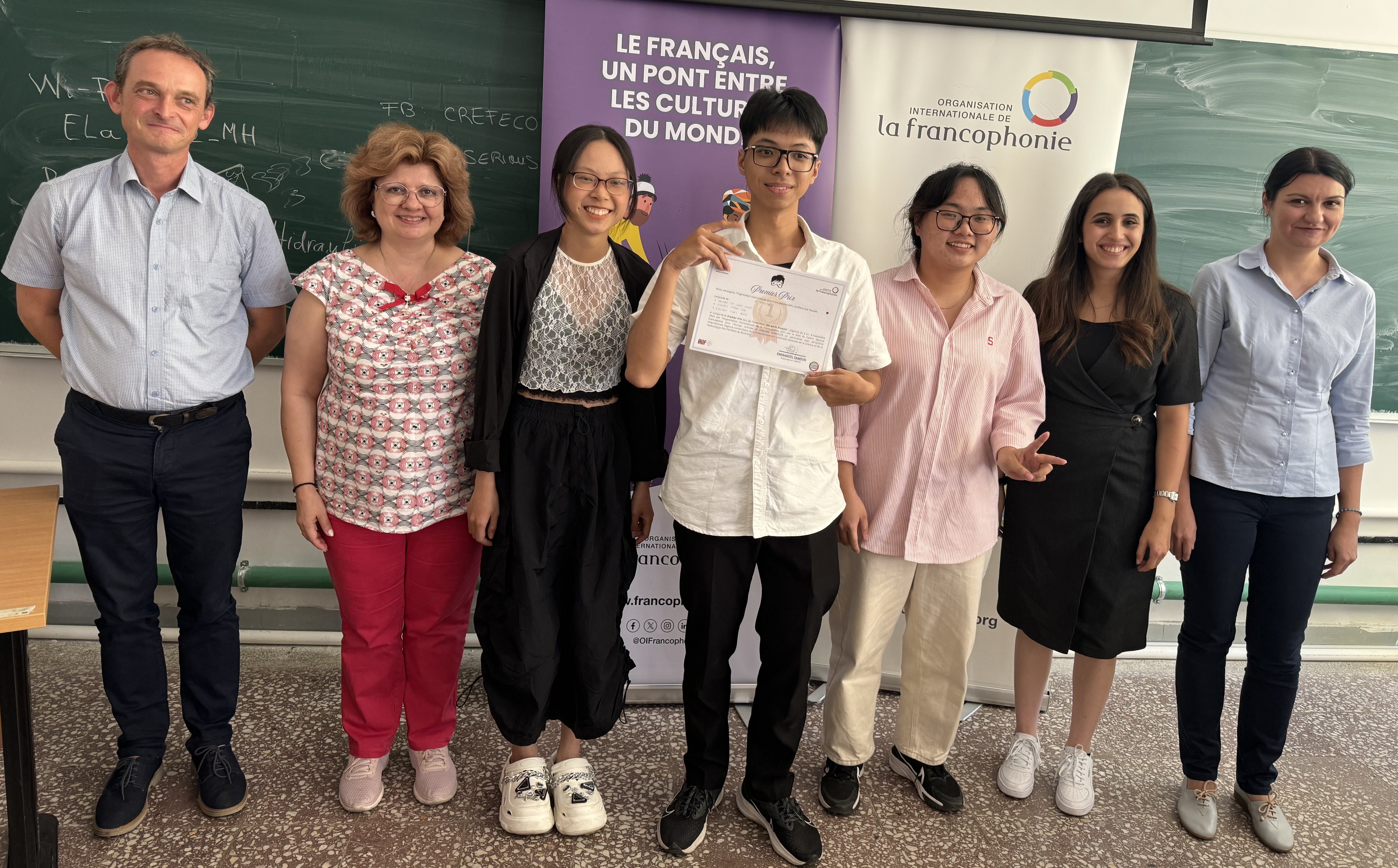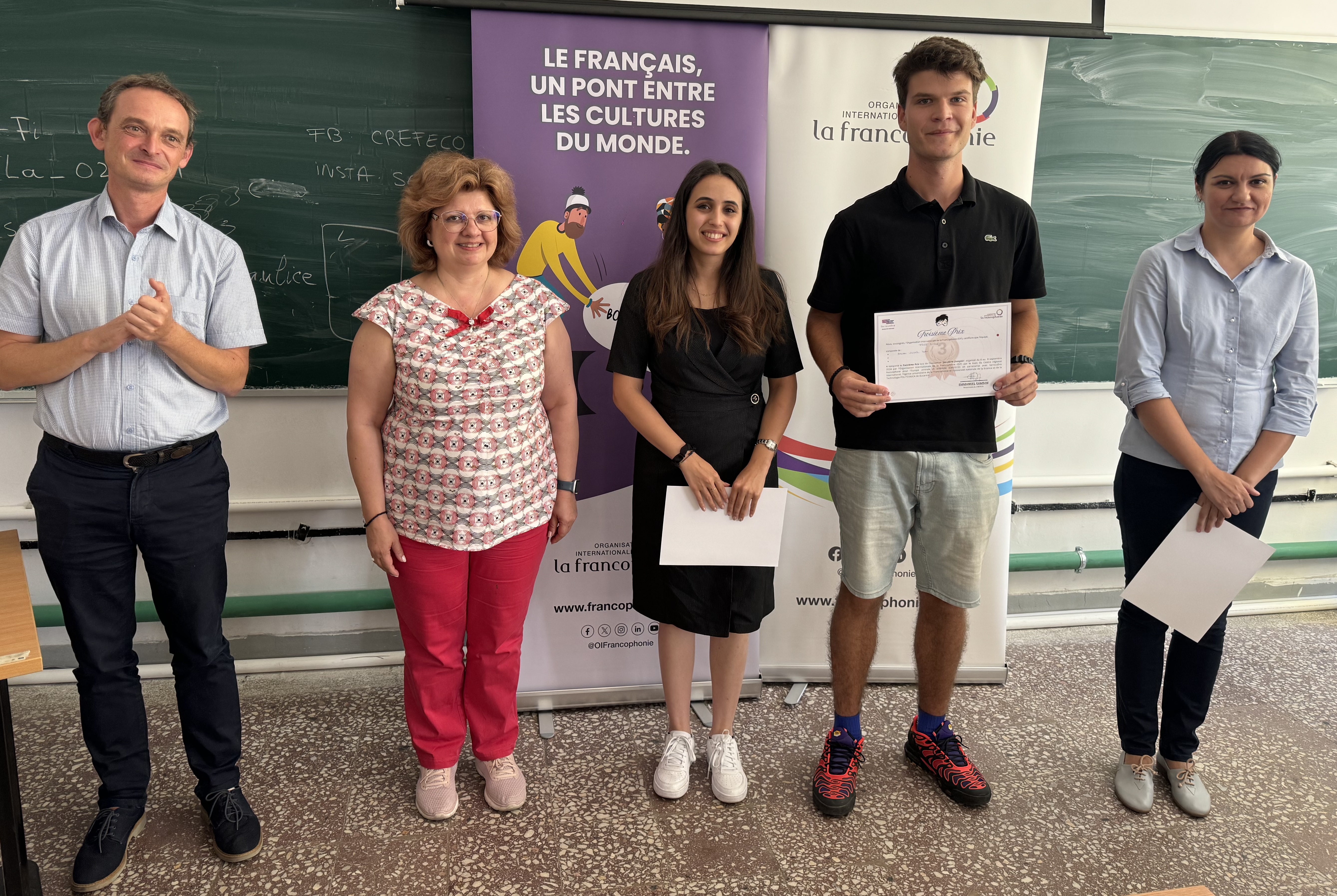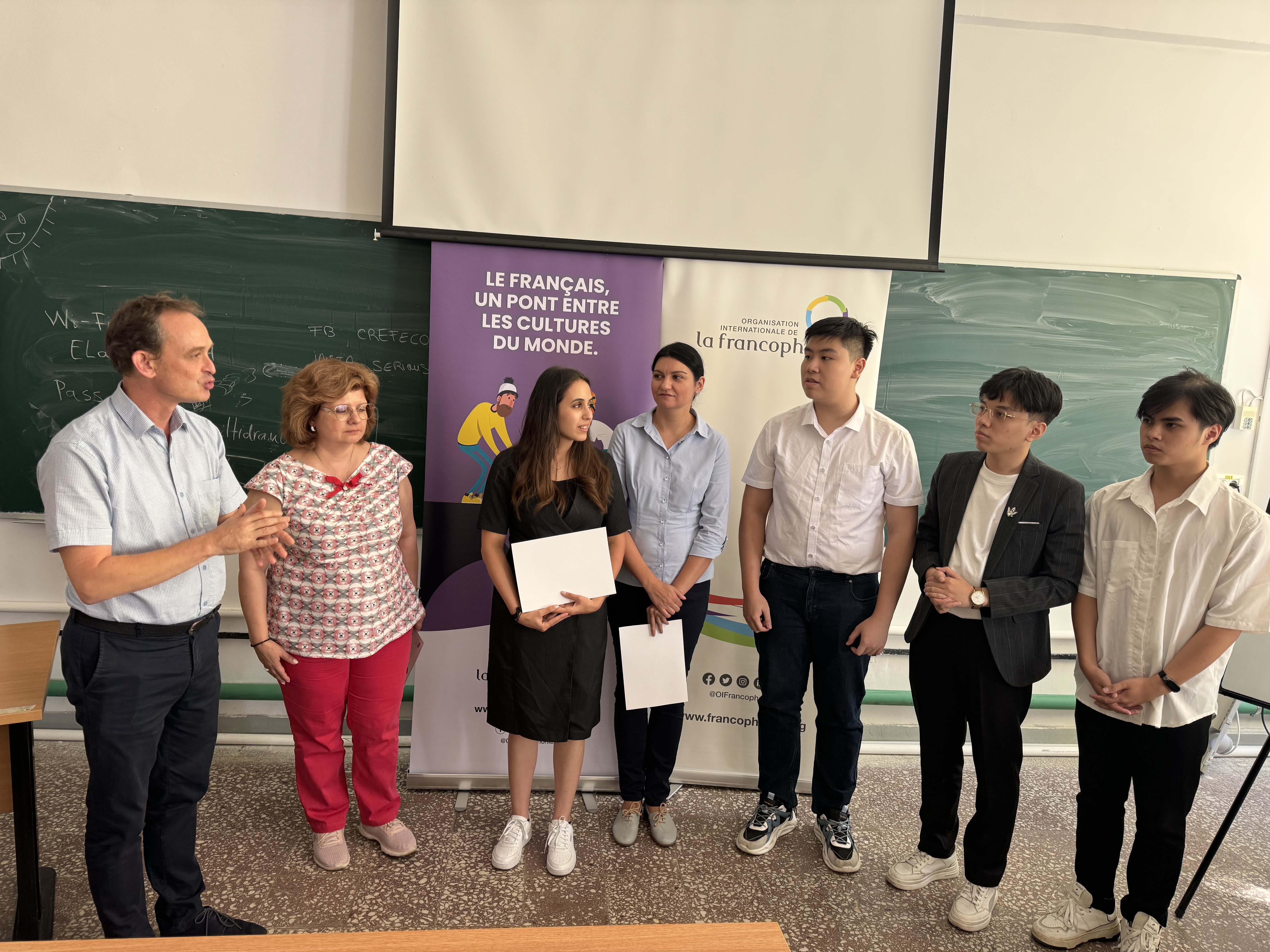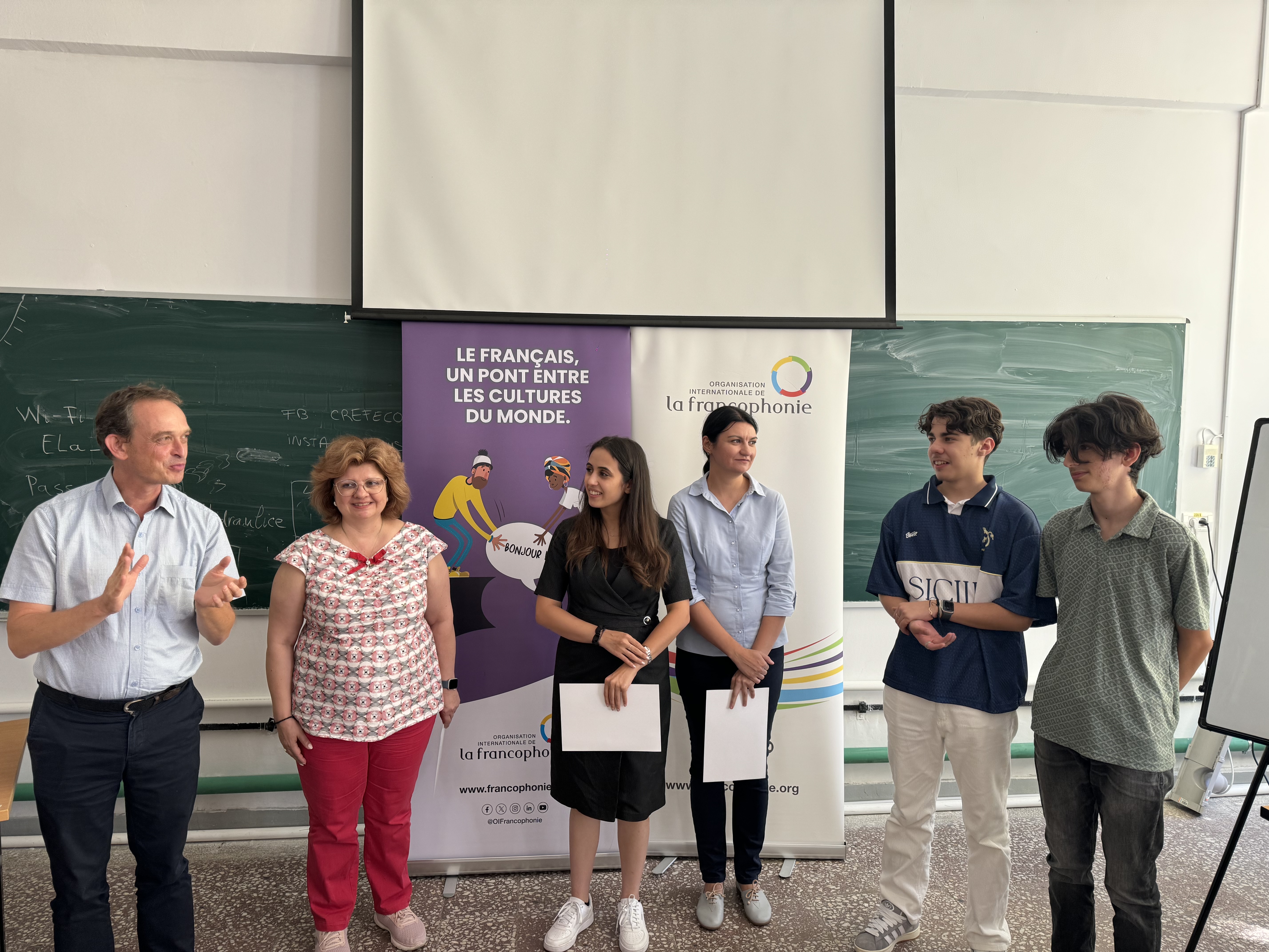 Les équipes participantes ont présenté leurs projets devant un jury composé de Ouidad Bendifallah, Irina Hulea (AUF) et Emmanuel Samson (OIF). En présence de Rennie Yotova, Directrice de l’enseignement et de l’apprentissage du français à l’OIF, les équipes gagnantes suivantes ont été récompensées.