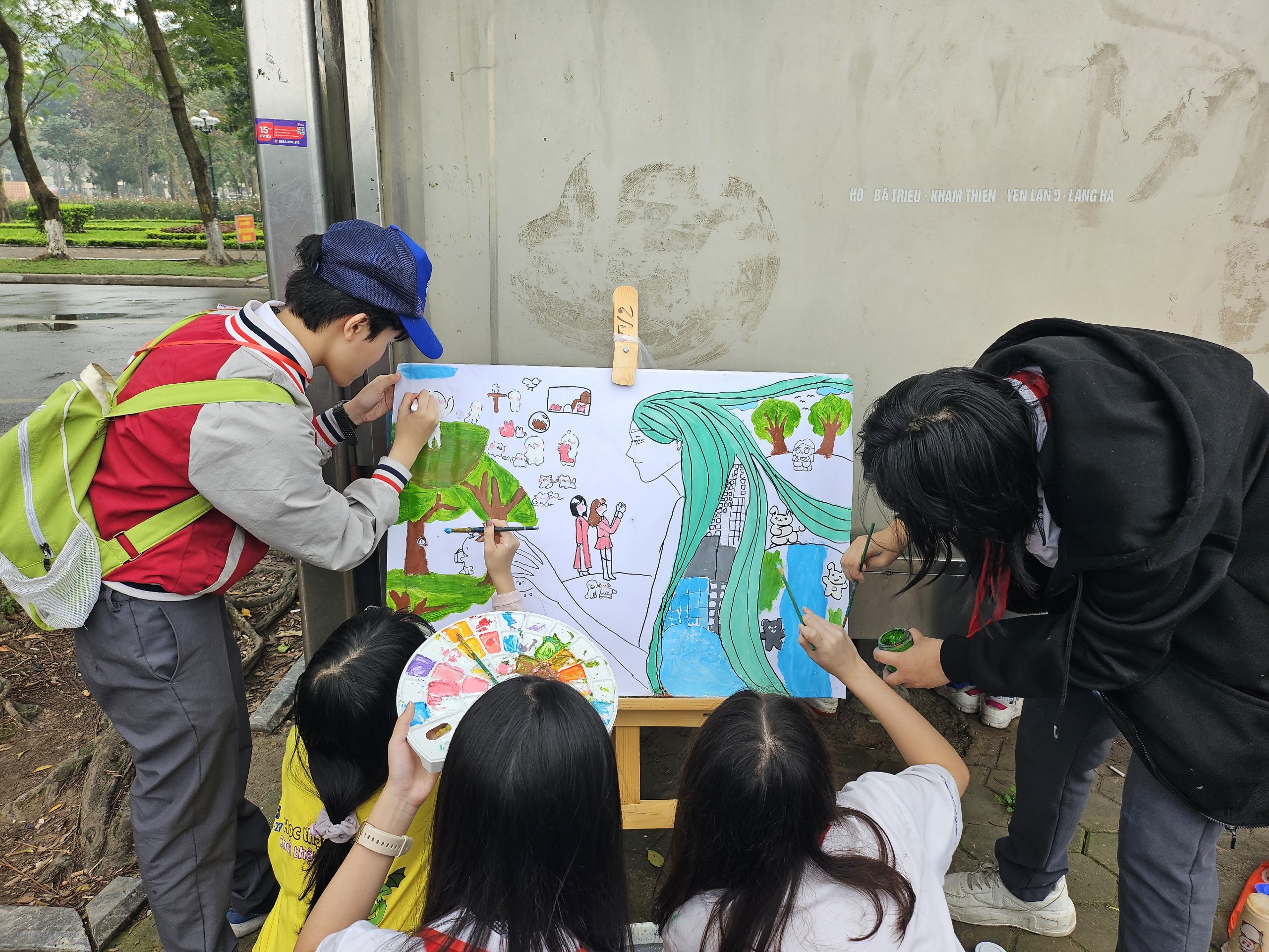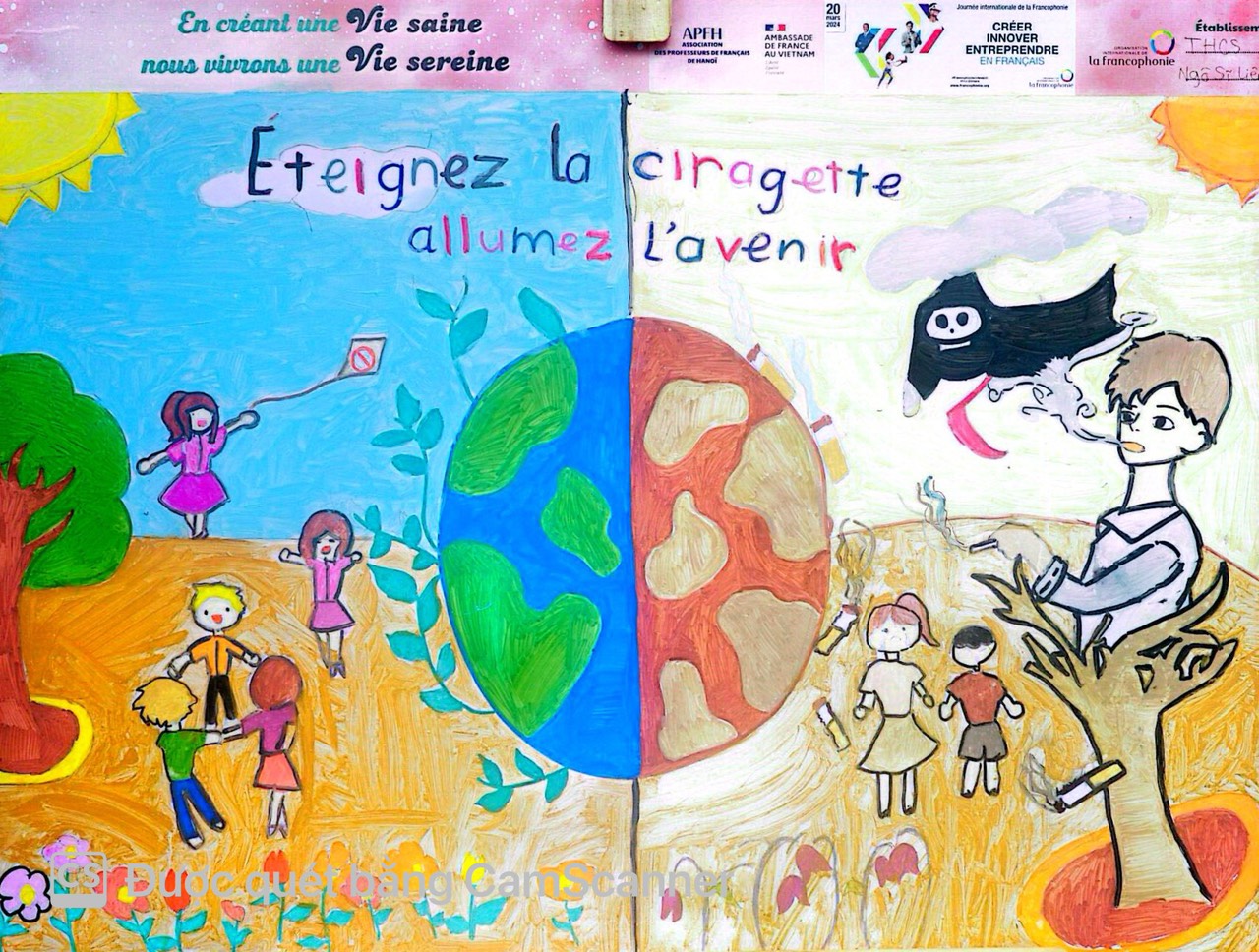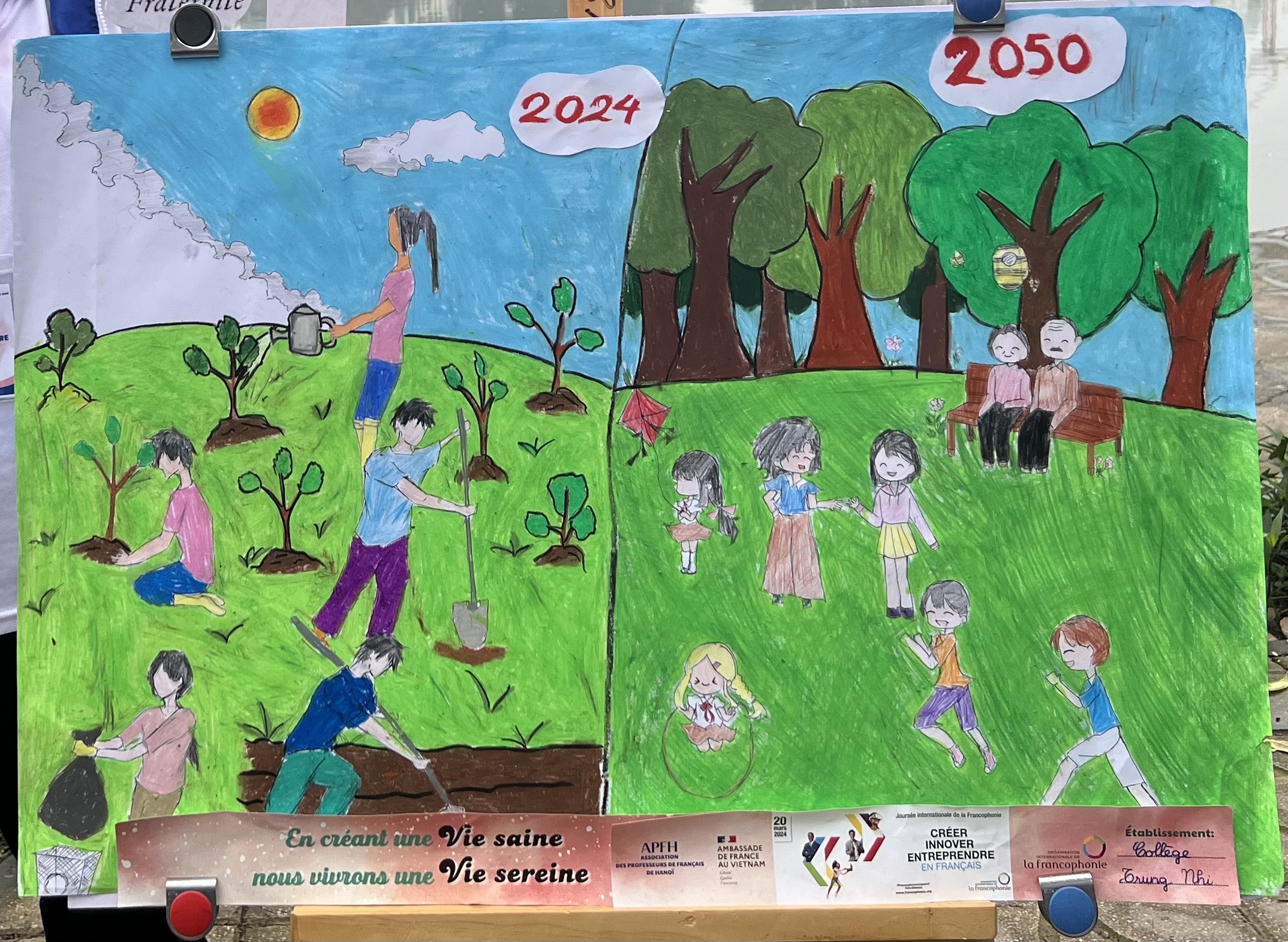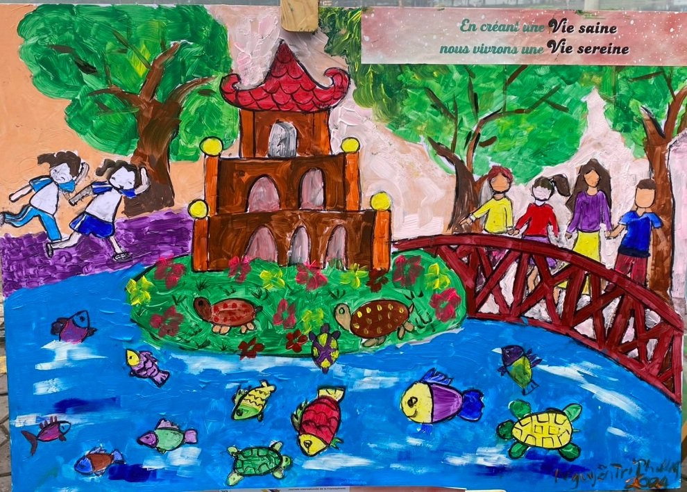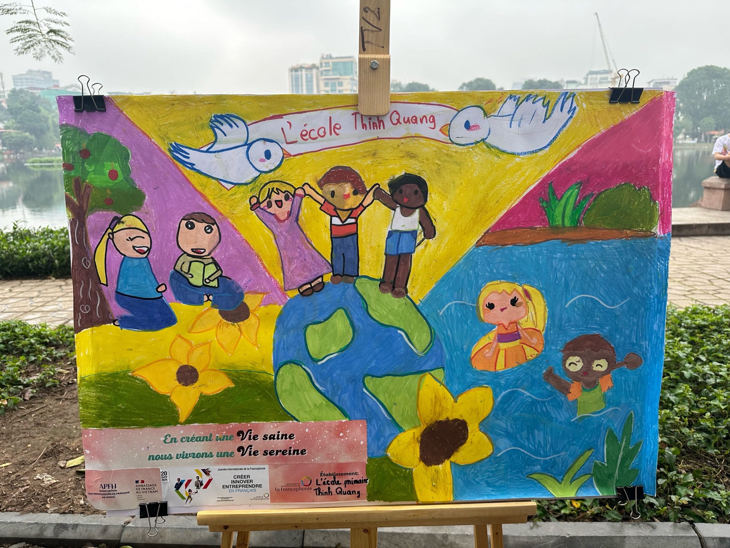 À l’occasion de la Journée internationale de la Francophonie, l’Association des professeurs de français de Hanoï a organisé un atelier de peinture intitulé « En créant une vie saine, nous vivrons une vie sereine ». Cet événement, ouvert à tous les élèves des écoles primaires et secondaires de la ville, s’est tenu le 24 mars autour du lac Thien Quang.