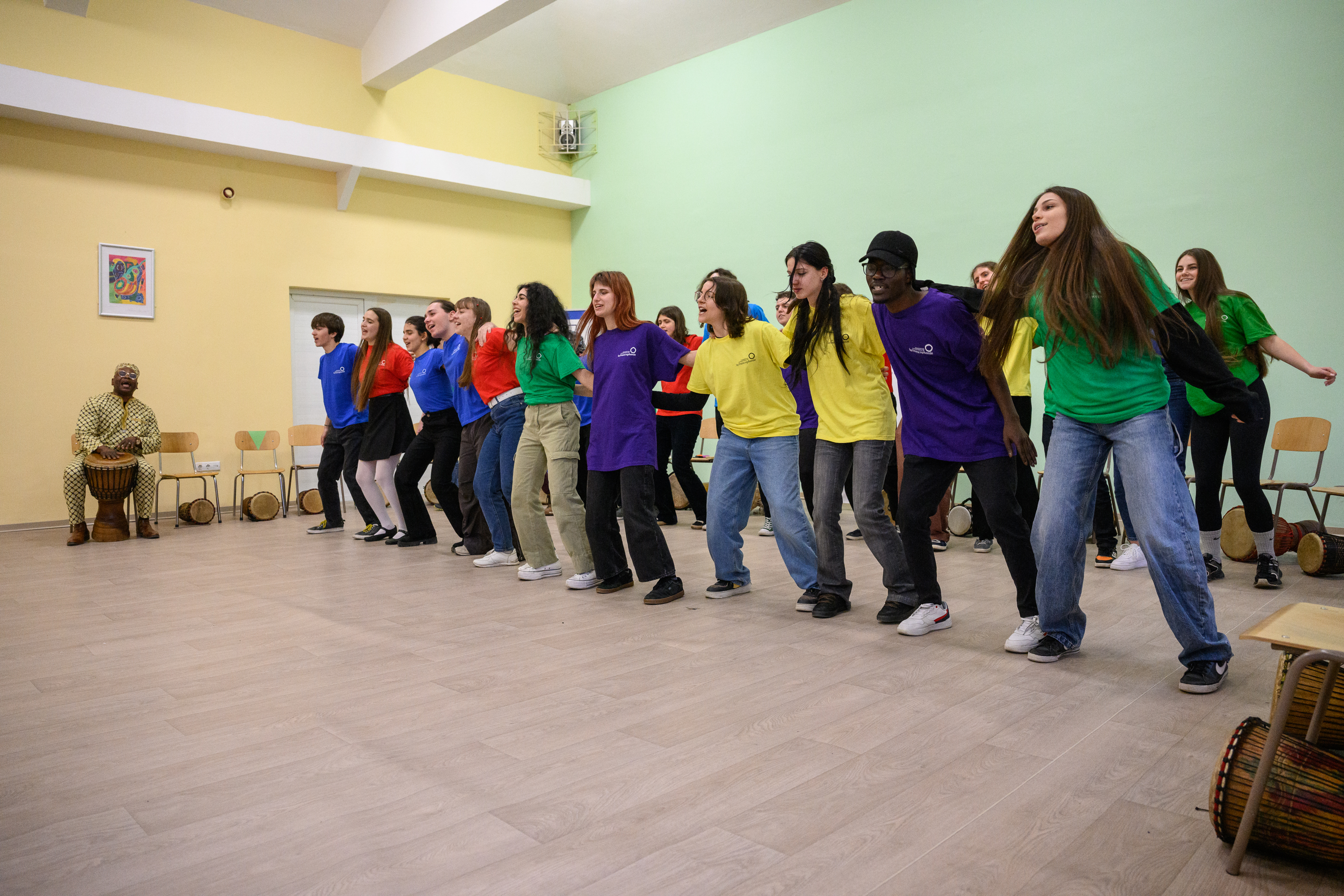 Afin de clôturer cette semaine dédiée à la Francophonie, le CREFECO a invité à Sofia l’artiste et musico-thérapeute Acacia (République démocratique du Congo) pour animer trois jours d’ateliers de chants et percussions avec des lycéens et étudiants francophones du 22 au 24 mars. Lors d’une soirée co-organisée avec l’APFB et l’Etablissement spécialisé de la Francophonie pour l’administration et le management (ESFAM), danses bulgares, défilé de costumes traditionnels de pays francophones et concert de chants et percussions ont réuni plus de cinquante invités sous le slogan “La Francophonie nous unit”.