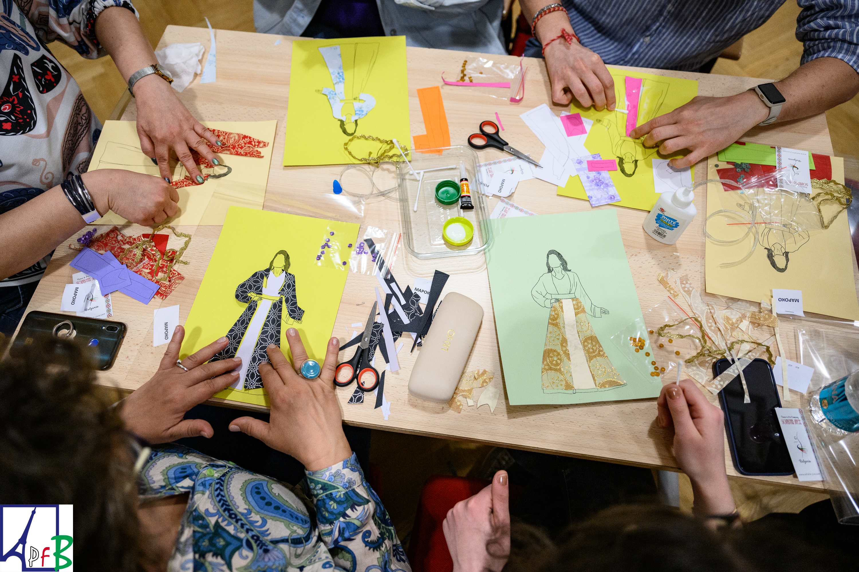 Le dimanche 24 en matinée a eu lieu un atelier de confection de costumes traditionnels où les participant(e)s étaient invité(e)s à reconstituer le design vestimentaire de différents pays francophones (Bulgarie, France, Maroc, Sénégal, Suisse et Vietnam). Cet atelier a été organisé à l’Institut français de Bulgarie par l’Association des Professeurs de et en français de Bulgarie (APFB) avec le soutien du CREFECO.