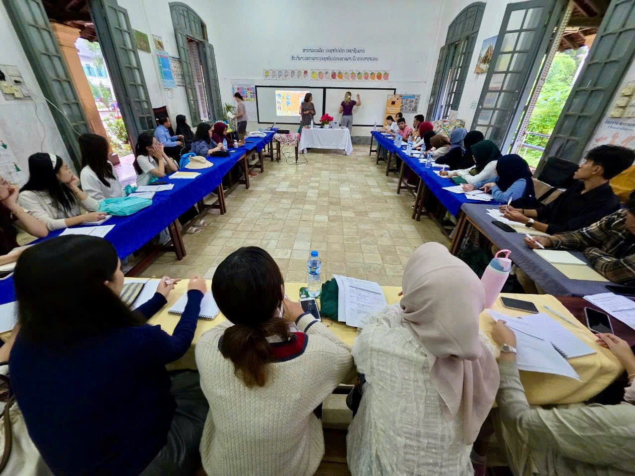 Pendant six jours, les participants ont alterné visites de terrain, cours théoriques sur le marketing touristique, et travail en groupe. À Luang Prabang, ils ont mené des enquêtes auprès de touristes, avant de rejoindre Vientiane pour présenter leurs projets devant un jury académique international et participer à des activités culturelles.