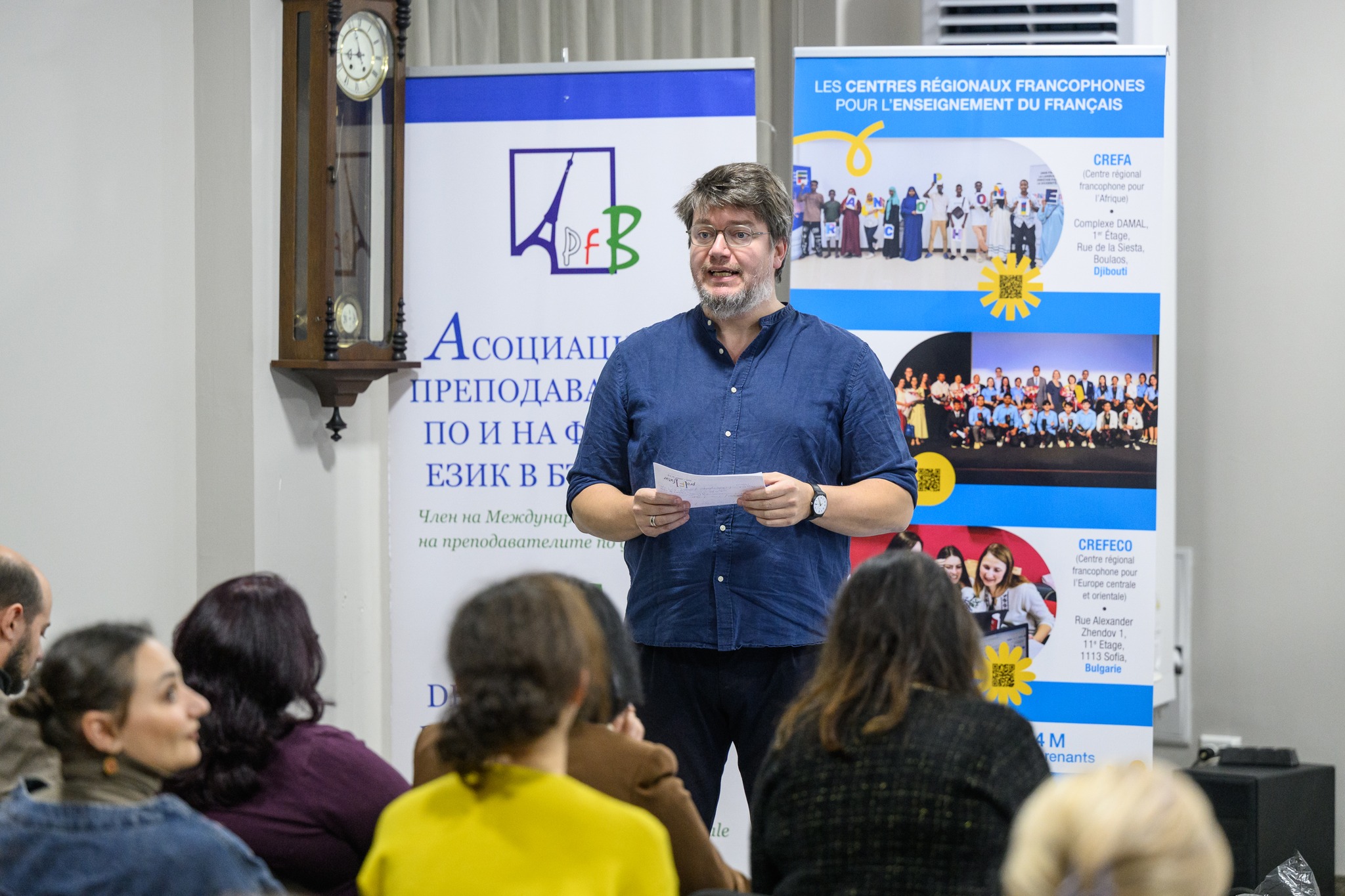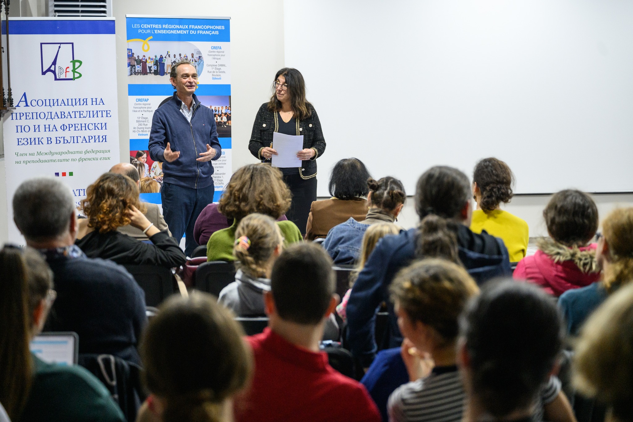 Dans le cadre de la Journée internationale des professeurs de français, les 28 et 29 novembre 2025, à Sofia s’est tenue la troisième édition du Festival international francophone de théâtre pour professeurs. L’événement est organisé par l’Association des professeurs de et en français en Bulgarie et le CREFECO (OIF), en coopération avec le programme “10/10 – scènes francophones à jouer et à lire” et le soutien de la Fédération internationale des professeurs de français.
