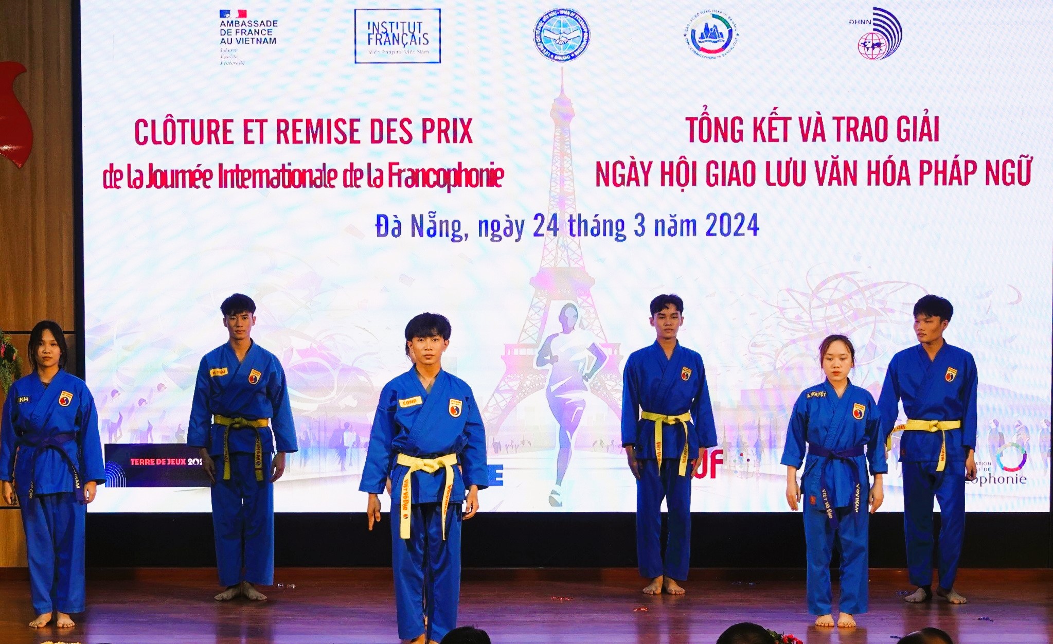 L’École des Langues étrangères de l’Université de Da Nang, en collaboration avec les autorités municipales, a organisé une cérémonie officielle le 20 mars, où des élèves ont démontré leurs talents artistiques et martiaux devant 200 personnes, francophones pour la plupart.