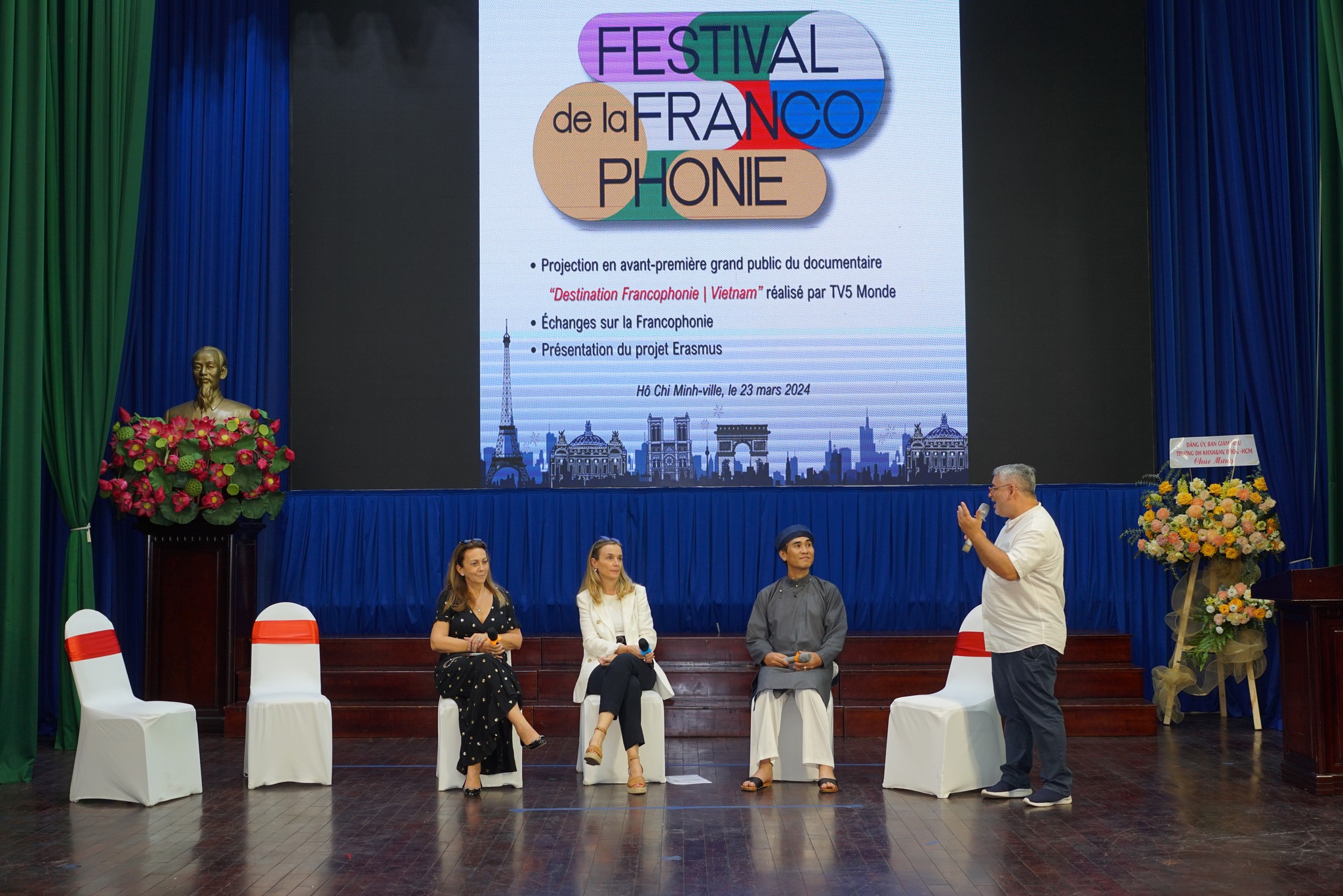 Plus au sud, à Ho Chi Minh Ville, le festival de la Francophonie, organisé le 23 mars par l’Association Culture et Espace Francophones, a rassemblé environ 300 jeunes et des membres de la communauté francophone. L’événement, soutenu par le Consulat général de France, l’Institut français, TV5 Monde et le CREFAP, a présenté en avant-première le documentaire “Destination Francophonie” d’Yvan Kabakoff, suivi d’une table ronde et d’un concours d’éloquence. Les participants ont également exploré des stands d’exposition portant sur trois thématiques : université et employabilité, artisanat, activités ludiques, culturelles et artistiques. Le CREFAP a contribué aux prix du concours d’éloquence et à la communication en amont de l’événement.