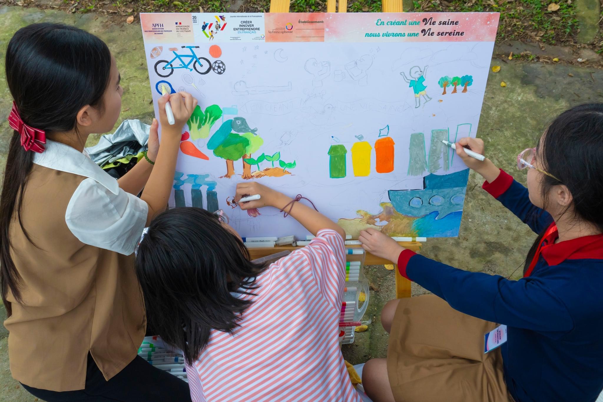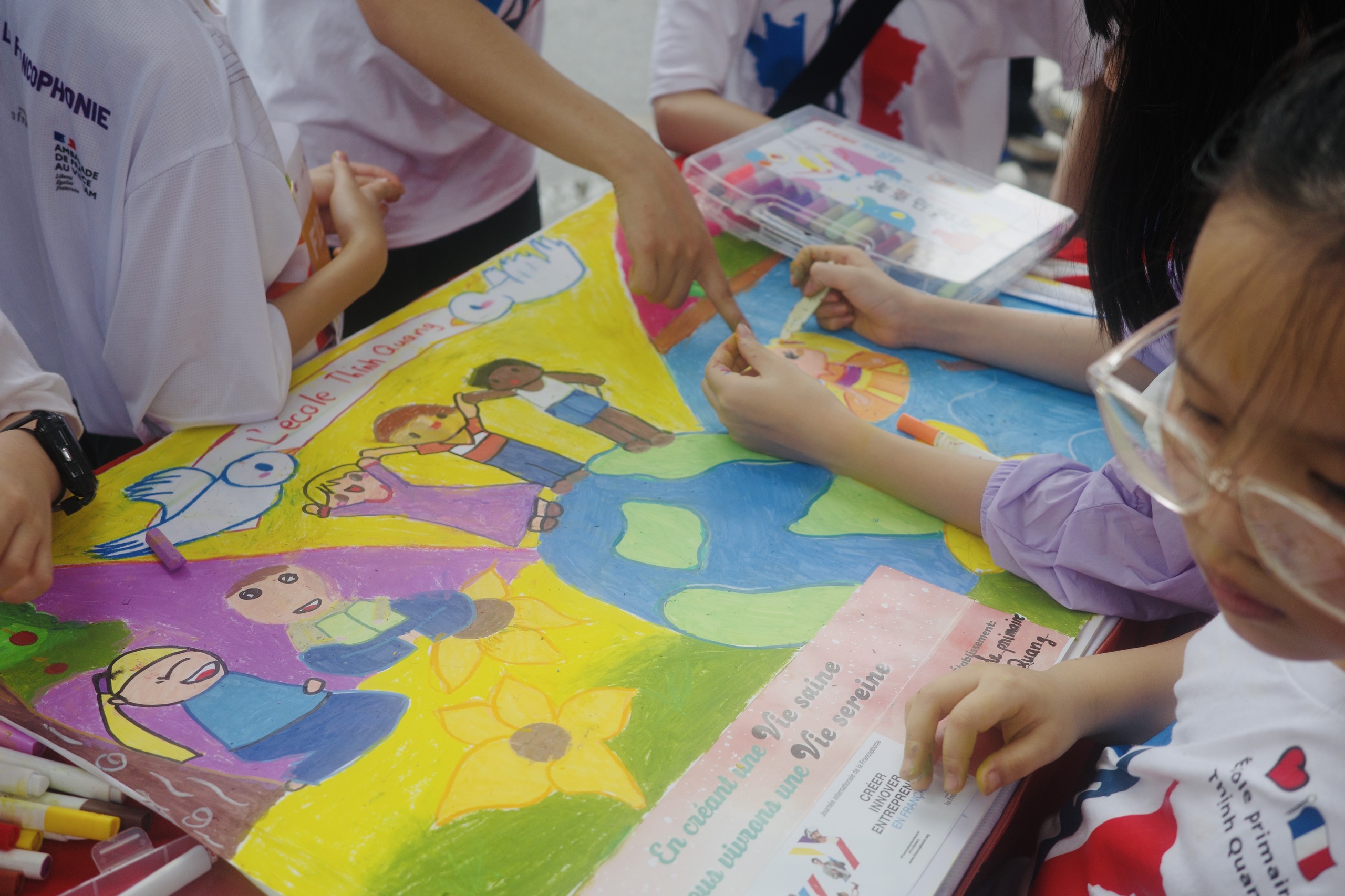Une semaine plus tard, le 24 mars, un atelier de peinture a rassemblé 105 élèves de 10 à 18 ans au bord du lac Thien Quang. Cet événement, co-financé par le CREFAP et les ambassades de France et du Canada, visait à encourager la créativité des jeunes francophones.