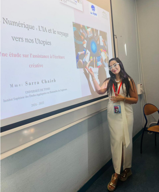 « Je tiens à exprimer ma plus sincère reconnaissance à l’Organisation internationale de la Francophonie (OIF) pour son soutien précieux, sans lequel ma participation au Congrès mondial de la FIPF à Besançon n’aurait pas été possible. Avant le congrès, j’ai eu l’honneur d’être désignée lauréate du premier prix d’un concours organisé par l’OIF, grâce à mon projet d’ateliers d’écriture créative assistée par l’intelligence artificielle. Cette reconnaissance s’est concrétisée par la prise en charge de ma participation au Congrès de Besançon. Un geste qui m’a profondément touchée et motivée à porter haut les valeurs de la francophonie éducative. Ce moment a été pour moi une forme de validation collective : la reconnaissance de l’OIF comme première lauréate a trouvé tout son sens et sa légitimité dans la réaction du public et dans l’intérêt suscité par mon travail. Je me suis sentie à la fois honorée, fière et profondément motivée à continuer dans cette voie. Je renouvelle mes remerciements à l’OIF pour la confiance accordée, et pour l’engagement constant à accompagner les enseignants francophones dans leur développement professionnel. », souligne Sarra CHAIEB, enseignante de français (Tunisie).