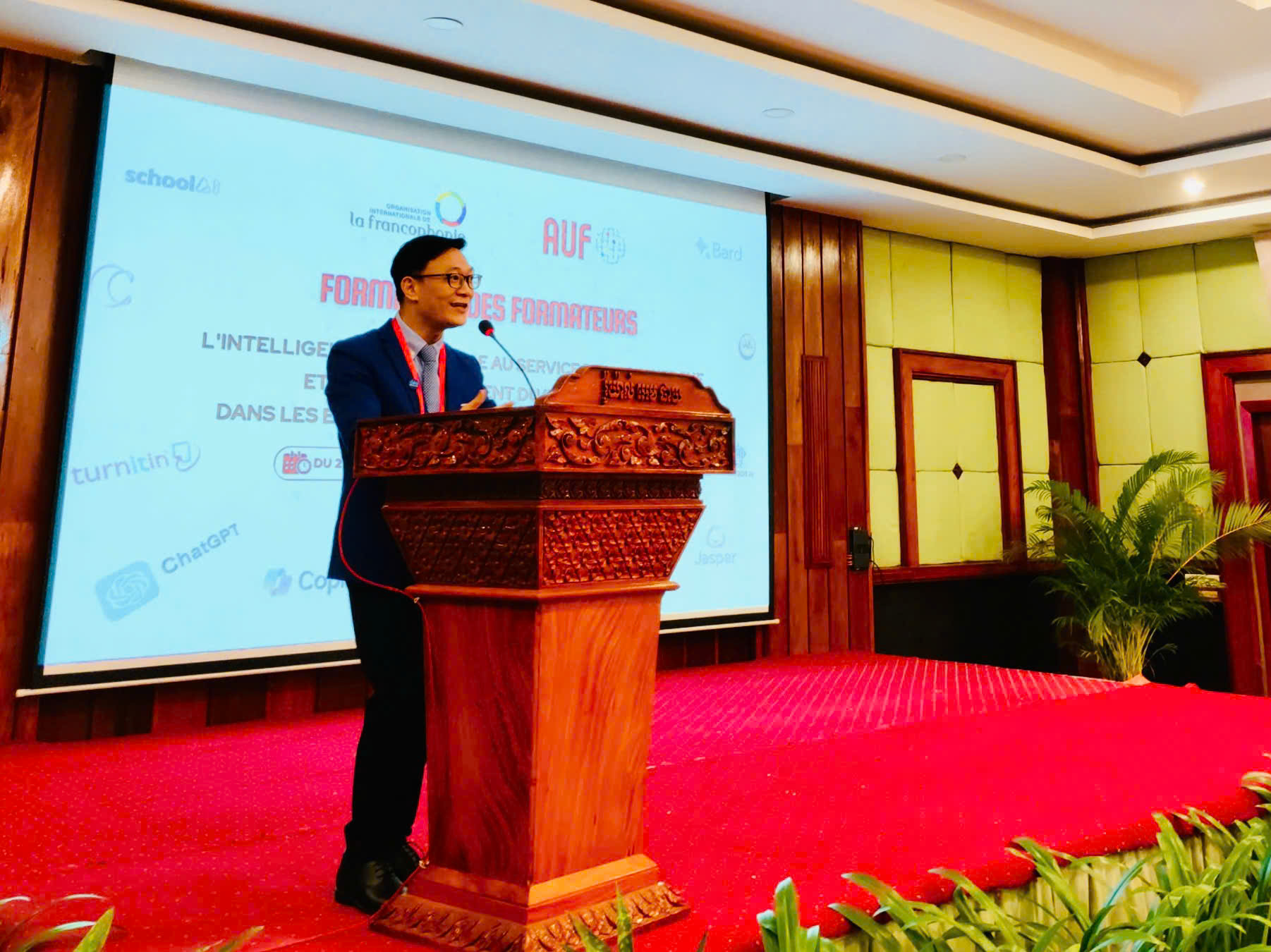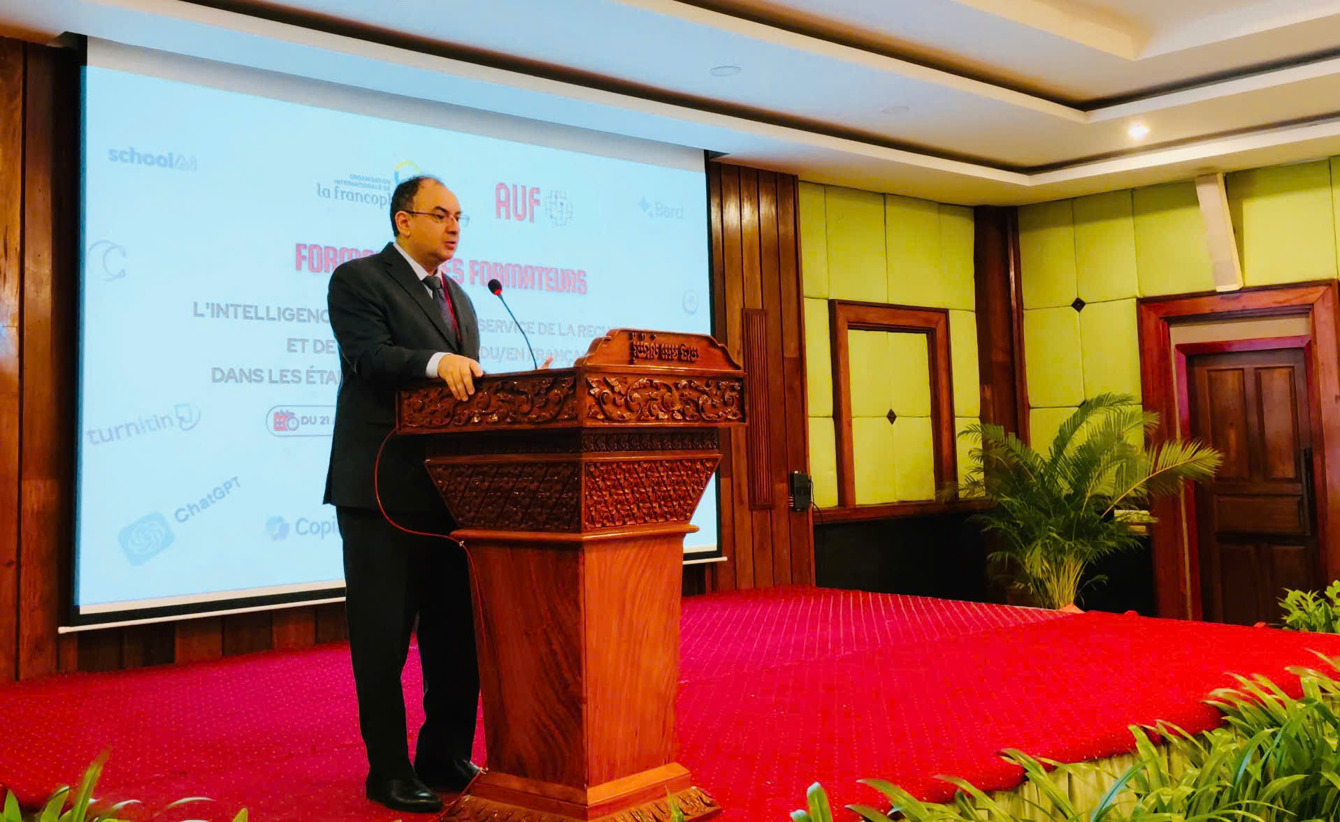 Du 21 au 23 avril 2025, la ville de Siem Reap accueille une formation régionale inédite sur le thème « L’intelligence artificielle au service de la recherche et de l’enseignement du/en français dans les établissements d’enseignement supérieur ». Coorganisé par l’Organisation internationale de la Francophonie (OIF), à travers son Centre régional francophone pour l’Asie et le Pacifique (CREFAP/DEAF), et l’Agence universitaire de la Francophonie (AUF) en Asie-Pacifique, cet événement rassemble 59 enseignants de français langue étrangère venus de huit pays : le Cambodge, l’Inde, le Laos, la Malaisie, la Mongolie, la Thaïlande, le Vietnam et Singapour.