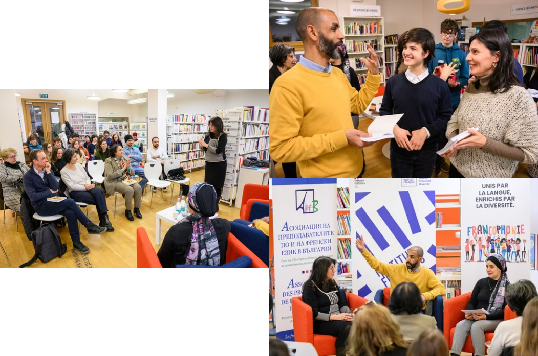 L’évènement a rassemblé des élèves et étudiant(e)s habitués de l’Institut Français, Madame Zakia El Midaoui, Ambassadrice du Maroc, Vyara Lyubenova, présidente de l’Association des professeurs de et en français de Bulgarie (APFB) et traductrice de « Bédouins au bord de la falaise » en bulgare, Claudia Calvo, attachée de coopération éducative à l’Institut Français de Bulgarie, et Emmanuel Samson, responsable du CREFECO.