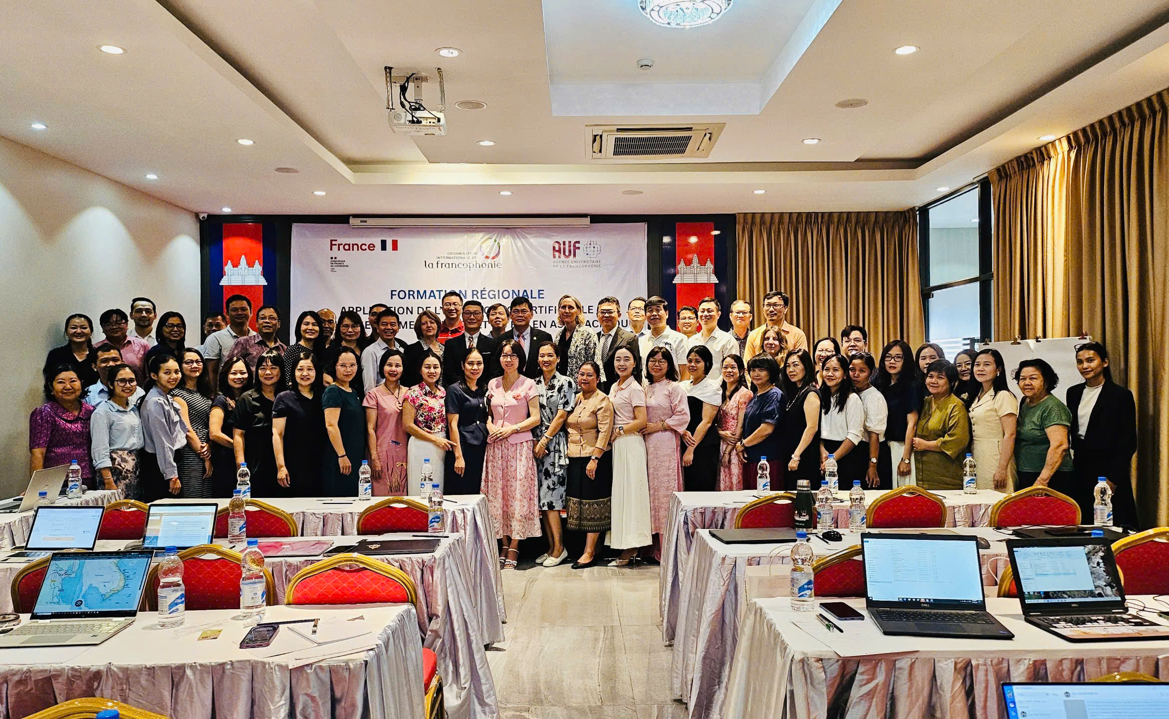 Organisée par le Centre régional francophone pour l’Asie-Pacifique (CREFAP/DEAF) de l’Organisation internationale de la Francophonie (OIF), en partenariat avec le Ministère cambodgien de l’Éducation, de la Jeunesse et des Sports, l’Ambassade de France et l’Agence universitaire de la Francophonie (AUF) au Cambodge, l’initiative réunit 52 enseignants universitaires venus du Cambodge, du Laos, de Thaïlande et du Vietnam.