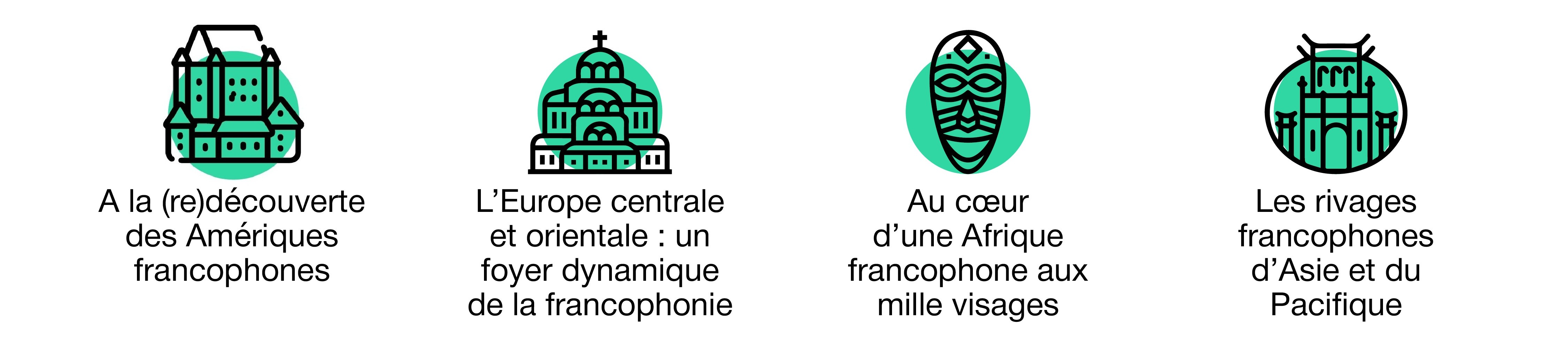 Ensemble, ils ont pu tester leurs connaissances sur les pays francophones lors de douze sessions réparties tout au long de la semaine autour quatre thèmes :