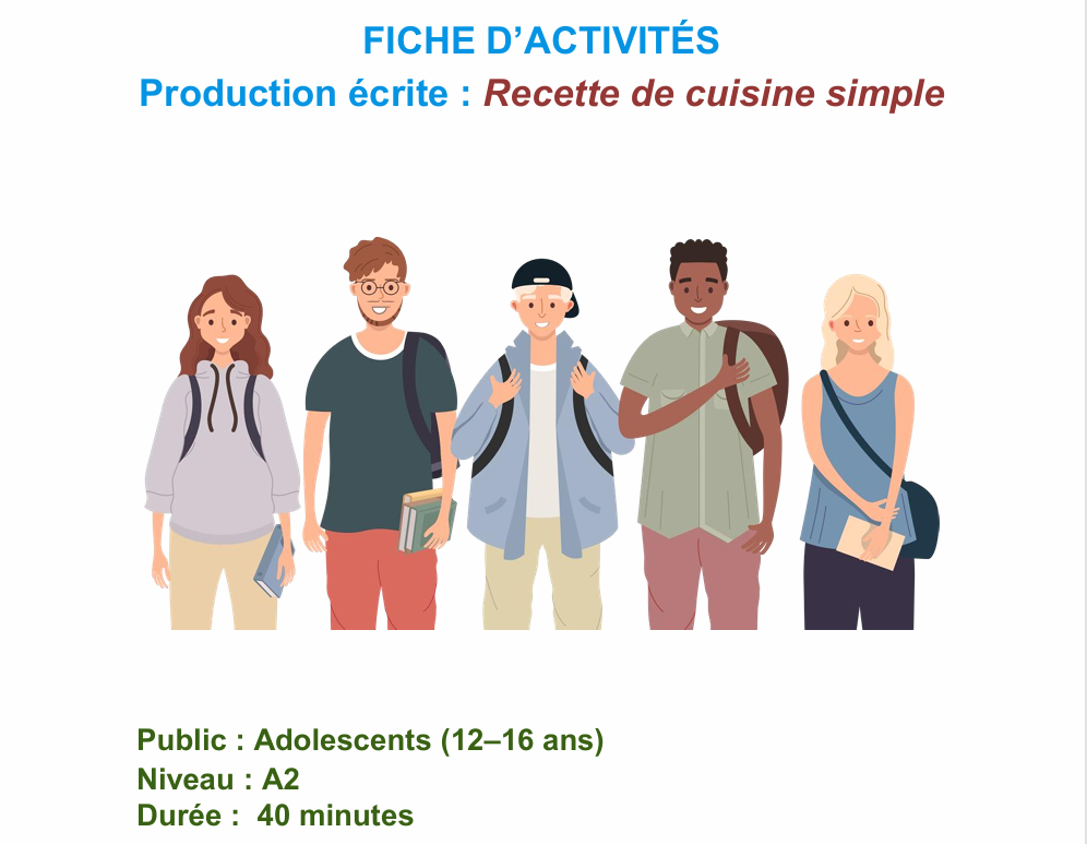 Cette fiche pédagogique est élaborée pour le niveau A1, dans le cadre de la formation « L’Intelligence artificielle au service de la recherche et de l’enseignement/apprentissage du/en français dans les...