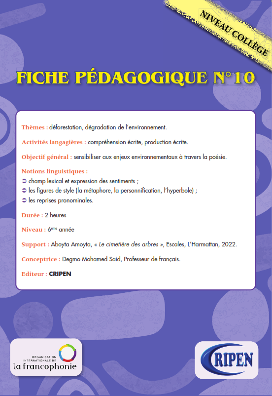 La série de fiches pédagogiques présentée ici est le résultat d’un travail collaboratif conduit dans le cadre d’un projet porté par l’Organisation Internationale de la Francophonie (OIF) et par le...
