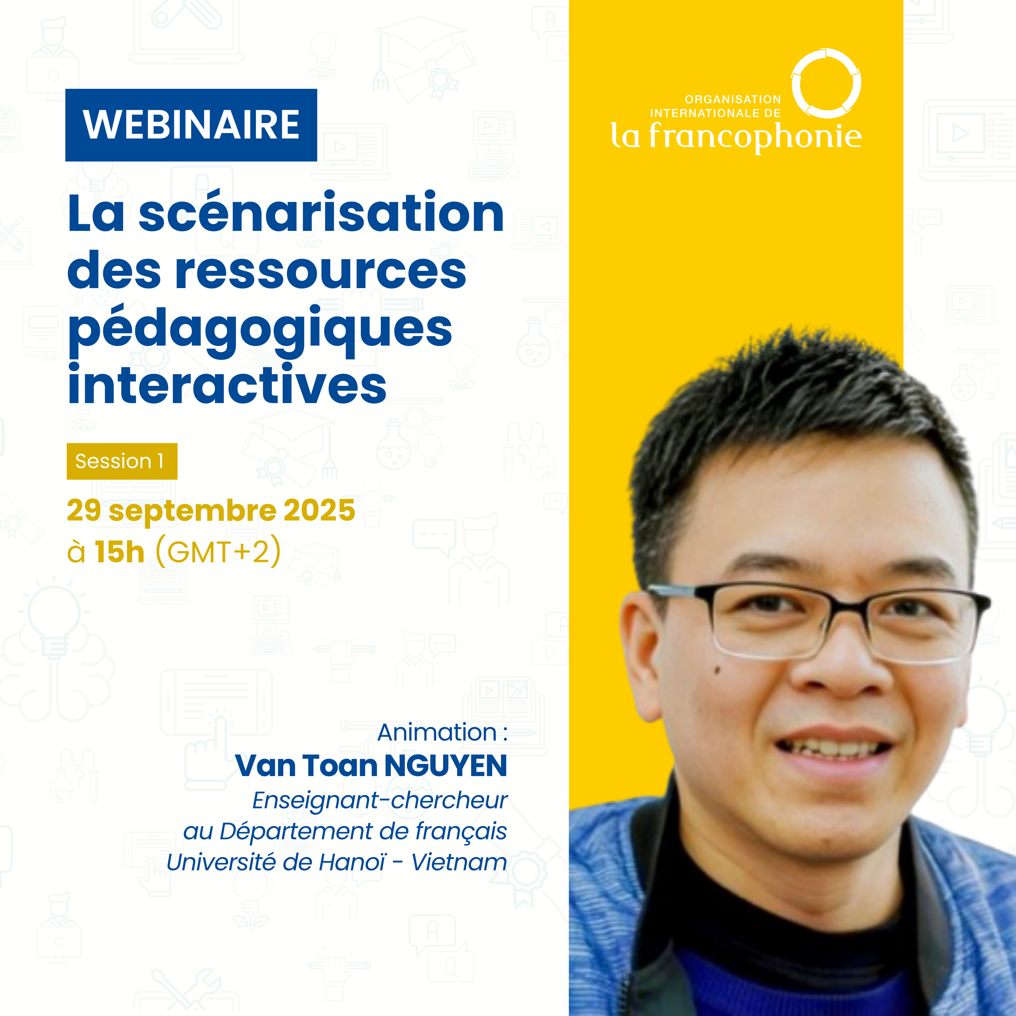 La première session du webinaire intitulé « La scénarisation des ressources pédagogiques interactives », organisée le 29 septembre 2025 par la Direction de l’Enseignement et de l’Apprentissage du Français (DEAF)…