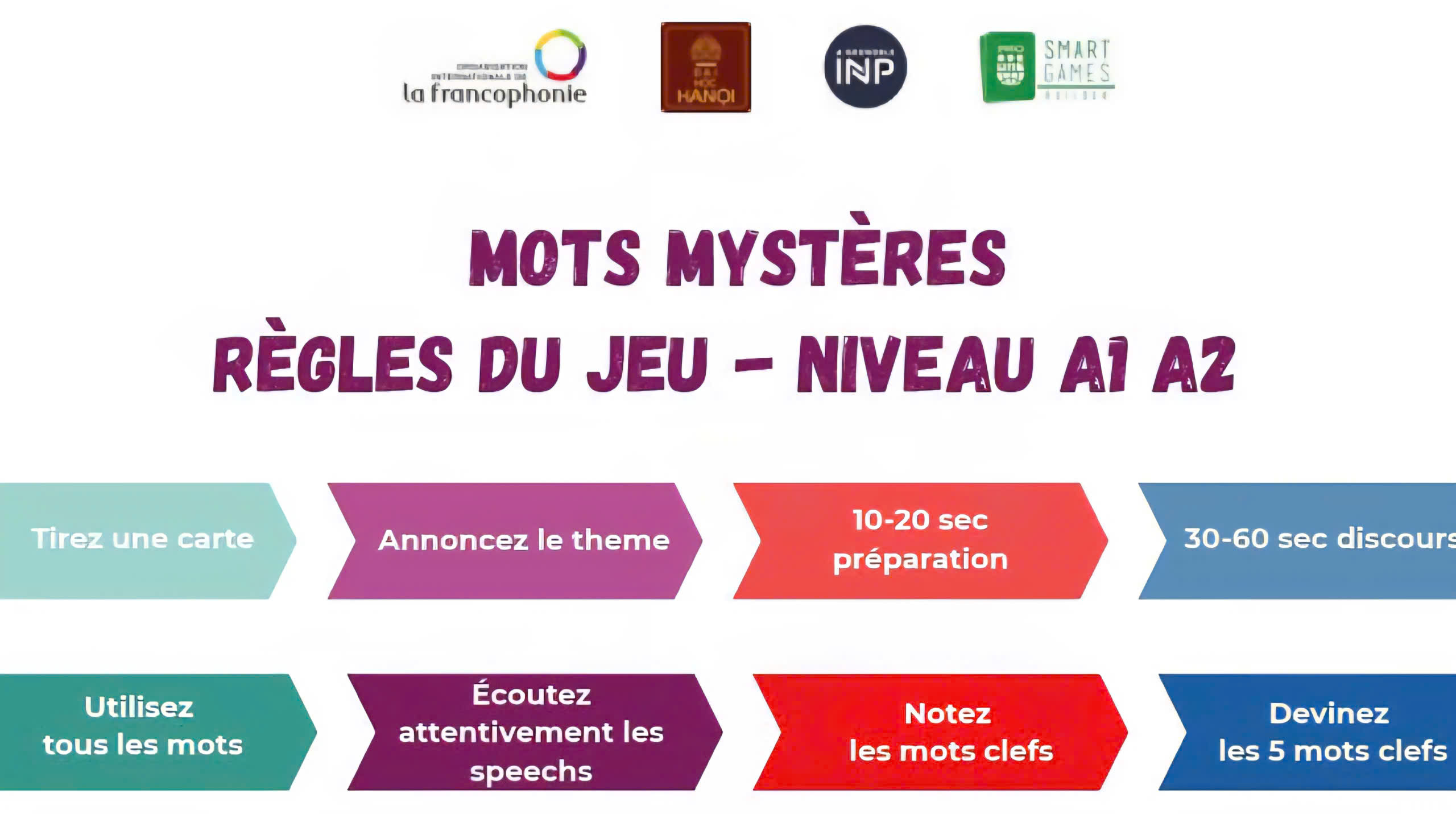 Mots Mystères – Un jeu sérieux pour apprendre et improviser et s’amuser en français ! Niveau A1, A2 Conçu dans le cadre d’un projet soutenu par le CREFAP et réalisé...