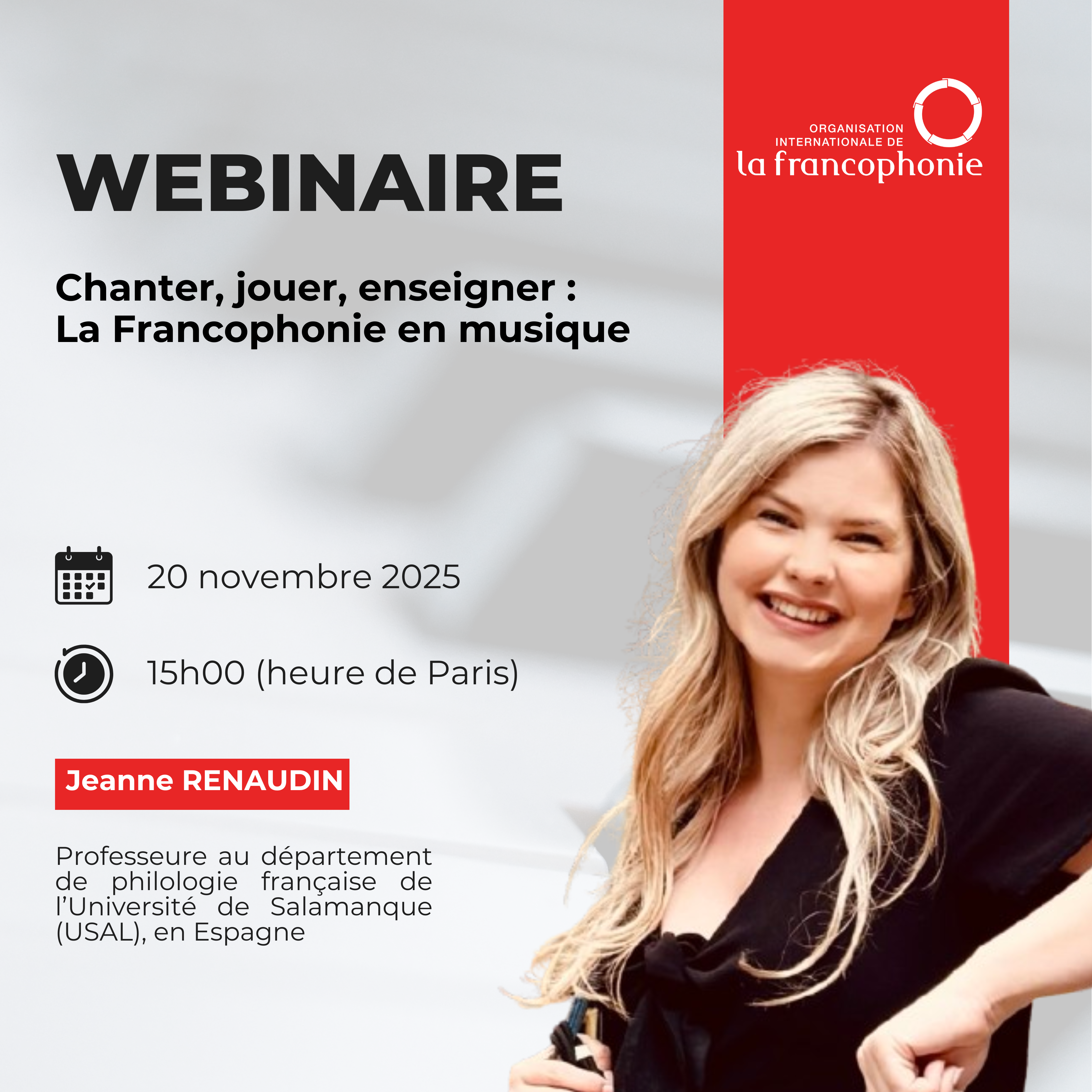 Le webinaire intitulé « Chanter, jouer, enseigner : Francophonie en musique », organisé à l’occasion de la Journée internationale des professeurs de français, le 20 novembre 2025, par la Direction…