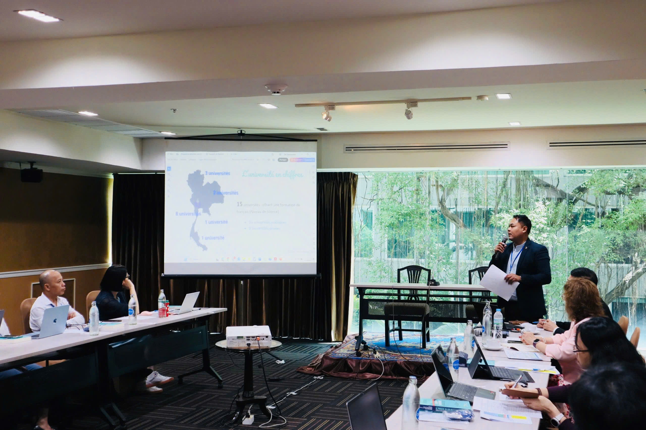 Organisée le 23 octobre, à l’occasion du Séminaire régional de recherche scientifique francophone 2025 à Bangkok, la Réunion annuelle du réseau des départements et sections de français d’Asie-Pacifique s’est tenue en présence de Mme Rennie Yotova, Directrice de la Direction de l’Enseignement et de l’Apprentissage du français (DEAF/OIF). Treize doyens et responsables de départements venus du Laos, de Thaïlande et du Vietnam y ont pris part. Cette rencontre avait pour objectifs de favoriser les échanges d’expériences et de pratiques, de renforcer la synergie entre les institutions et d’envisager les actions à mener pour le développement du français dans la région.