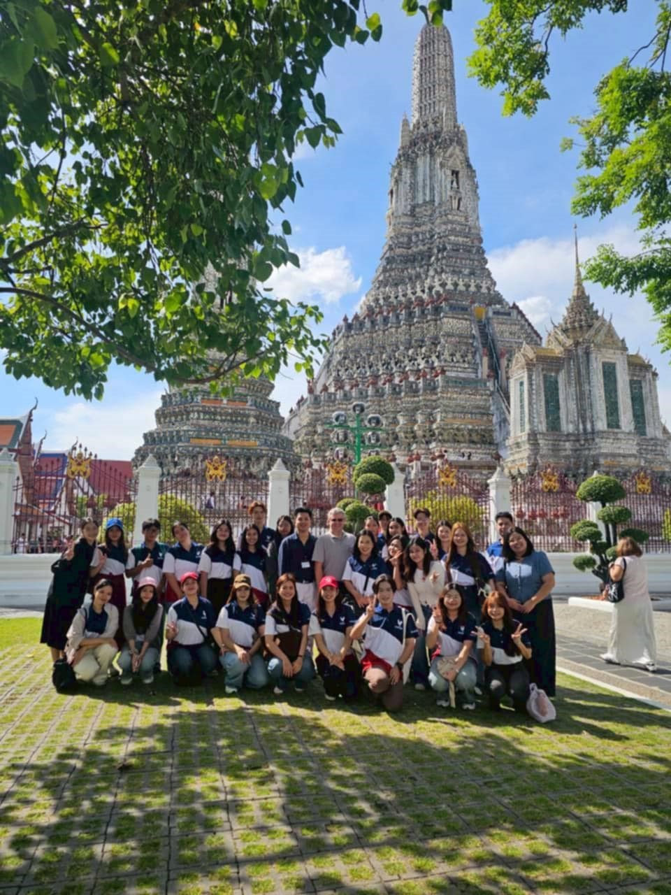 Du 22 au 24 octobre, 25 étudiants de deuxième année ont ensuite pris part à une visite d’études à Bangkok et Ayutthaya, offrant une immersion rare dans le monde professionnel francophone. Encadrés par cinq enseignants, ils ont été accueillis par Thai Airways International, l’hôtel The Sukhothai Bangkok, l’Alliance Française de Bangkok et le musée national Chao Sam Praya. À travers ces rencontres, les étudiants ont découvert les réalités des métiers du tourisme, de l’hôtellerie, du transport aérien et de la médiation culturelle, tout en bénéficiant de conseils concrets pour leur future carrière. L’excursion s’est enrichie de visites patrimoniales, notamment aux temples Wat Arun et Wat Yai Chai Mongkol, mêlant ainsi apprentissage linguistique et immersion culturelle.